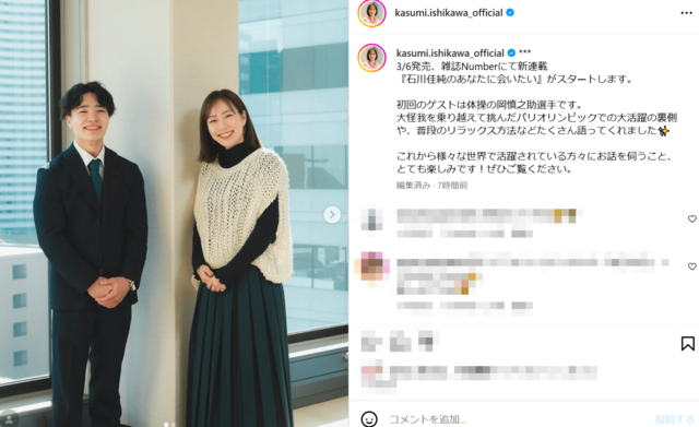 「北川景子さんにも似てるし綺麗」美人化で話題の石川佳純、男性アスリートとの超爽やか2ショットに「お似合いですね」 ピンズバNEWS編集部 2025.3.5 エンタメ (2/2ページ) 1ページ目から読む ■【画像】「北川景子さんにも似てるし綺麗」石川佳純、男性アスリートとの“お似合い”2ショット ※画像は石川佳純のインスタグラムより 今回の投稿には《結婚発表かと思った〜》《いつみても北川景子さんにも似てるし綺麗ですね》といった反響も。石川と岡選手の笑顔にほっこりする。 この画像の記事を読む 1 2