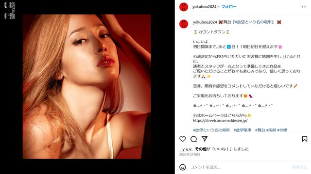 「地上波ドラマに復帰してほしい俳優」ランキング、香川照之を抑えた「悪女役」が見たい美貌あふれる女優は【トップ3】 ピンズバNEWS編集部 2025.3.15 テレビドラマ 女優 俳優 (4/4ページ) 1ページ目から読む ■【画像】4年ぶり女優復帰でみせた変わらぬ美貌の流し目ショット 昨年上演された舞台『欲望という名の電車』で変わらぬ美貌と演技で、観客を魅了した沢尻エリカ。 舞台『欲望という名の電車』公式インスタグラムより この画像の記事を読む 1 2 3 4