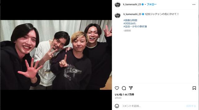 旧ジャニ「好きだった金田一少年」ランキング、ヘイセイ山田涼介を抑えた圧倒的愛着のトップは【トップ3】 2025.3.17 ジャニーズ (4/4ページ) 1ページ目から読む ■【画像】4代目は不在…歴代「金田一少年」の胸アツ集合ショット 亀梨和也のインスタで公開された“金田一少年集合写真”。左から5代目の道枝駿佑、2代目の松本潤、初代の堂本剛、3代目の亀梨。 亀梨和也 公式インスタグラムより この画像の記事を読む 1 2 3 4