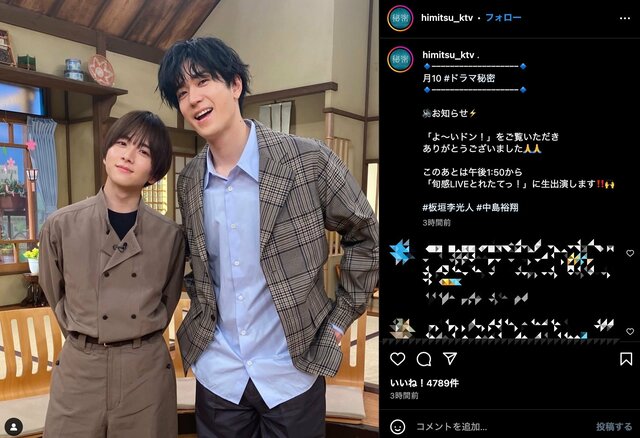 板垣李光人・中島裕翔『秘密』は半分成功で半分失敗 絶賛の声が相次ぐ一方で伸びなかった数字…漫画原作ドラマが抱える悩ましいジレンマ ドラマライター・ヤマカワ 2025.3.31 テレビドラマ (3/3ページ) 1ページ目から読む ■【画像】板垣李光人とヘイセイ・中島裕翔、顔面偏差値が高すぎるにこやか2ショット シリアスな場面が多い『秘密』。2人のこんな笑顔をもっと見てみたい! ※画像は『秘密~THE TOP SECRET~』公式インスタグラムアカウントより ■カンテレ『秘密~THE TOP SECRET~』公式サイト この画像の記事を読む 1 2 3