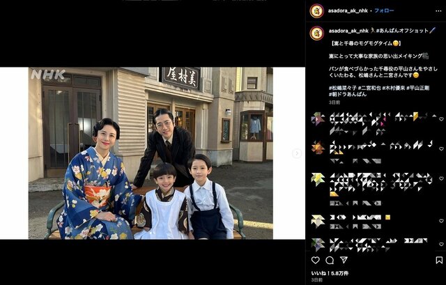 今田美桜にのしかかるプレッシャー 『あんぱん』夫婦ものと見せかけたヒロイン重視仕様、豪華共演陣を引っ張る座長としての期待も ドラマライター・ヤマカワ 2025.4.7 テレビドラマ (3/3ページ) 1ページ目から読む ■【画像】二宮和也、初の朝ドラも登場は一瞬『あんぱん』貴重な家族だんらんショット 二宮和也(41)の出演も話題となったが、スタート時点ですでに故人。今後も回想のみの出演になりそうだ。 ※画像は『あんぱん』公式インスタグラムアカウントより ■NHK『あんぱん』公式サイト この画像の記事を読む 1 2 3