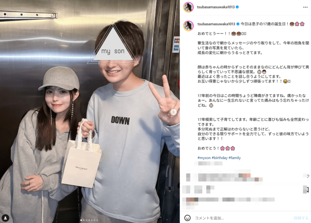 「口元そっくり」益若つばさ、輪郭も激似イケメンに成長17歳息子との2ショットが沸騰「彼氏彼女と言われても気づかない」 ピンズバNEWS編集部 2025.4.15 エンタメ (2/2ページ) 1ページ目から読む ■【画像】「口元そっくり」益若つばさ、イケメンに成長した17歳息子との2ショット ※画像は益若つばさのインスタグラムより イケメンに成長した17歳息子との2ショットが沸騰中の益若つばさ。《口元そっくり》《彼氏彼女と言われても気づかない》と驚きの声が上がった親子の姿をぜひ御覧あれ。 この画像の記事を読む 1 2