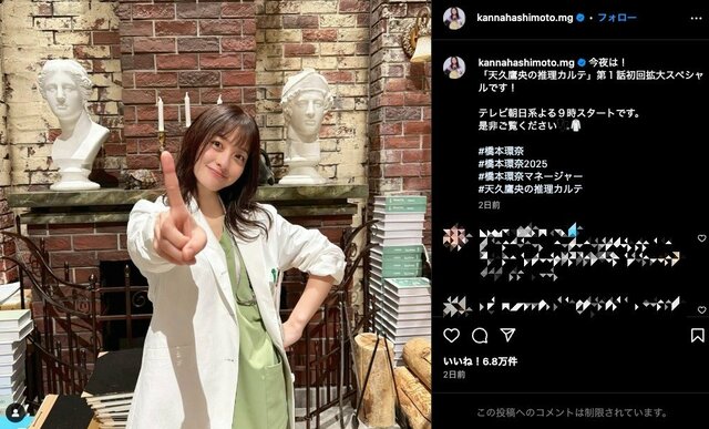 橋本環奈『天久鷹央の推理カルテ』は近年まれに見るハマり役 朝ドラ『おむすび』では活かせなかった天性の資質 ドラマライター・ヤマカワ 2025.4.29 テレビドラマ (3/3ページ) 1ページ目から読む ■【画像】橋本環奈、白衣姿で1本指?『天久鷹央の推理カルテ』告知で謎ポーズ 橋本環奈は作品を選ぶ俳優だともいえる。 ※画像は橋本環奈公式インスタグラムアカウントより ■テレビ朝日『天久鷹央の推理カルテ』公式サイト この画像の記事を読む 1 2 3