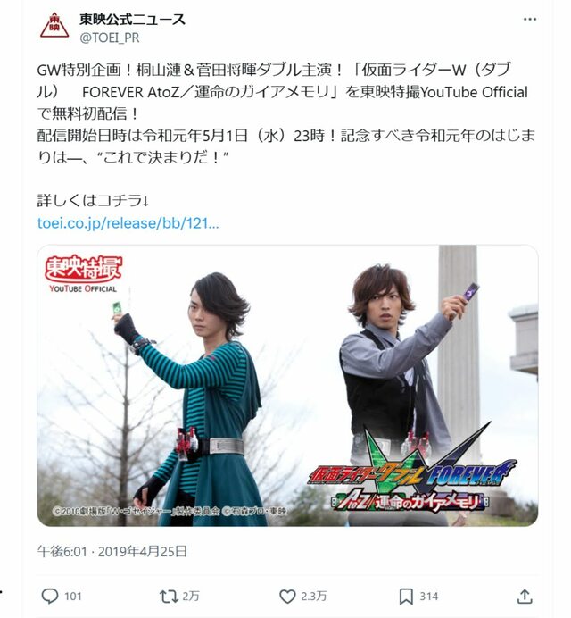 爆売れした「仮面ライダー俳優」ランキング、佐藤健を抑えた「有名女優と結婚した」一流俳優は【トップ3】 ピンズバNEWS編集部 2025.4.27 俳優 (4/4ページ) 1ページ目から読む ■【画像】「爆売元仮面ライダー俳優」トップ、あどけなさ残るかつての変身ポーズ 菅田将暉は、『仮面ライダーW』で桐山漣とともに主演、ドラマ初出演&初主演をはたした。 東映公式ニュース 公式Xより この画像の記事を読む 1 2 3 4