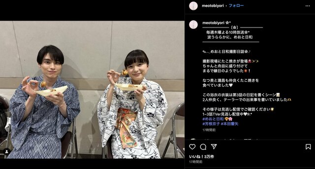 芳根京子『めおと日和』ムズキュンだけで大勝利 朝ドラ『あんぱん』と対称的な“なんでもない日常の尊さ”を際立たせる時代設定の妙 ドラマライター・ヤマカワ 2025.5.15 テレビドラマ (3/3ページ) 1ページ目から読む ■【画像】芳根京子と本田響矢「この夫婦大好き」浴衣姿でたこ焼きもぐもぐのオフショがかわいすぎ この2人の悲劇なんて見たくない! ※画像は『波うららかに、めおと日和』公式インスタグラムアカウントより ■フジテレビ『波うららかに、めおと日和』公式サイト この画像の記事を読む 1 2 3