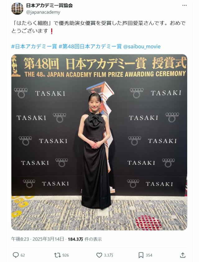 「朝ドラヒロインで見たい女優」ランキング、小芝風花を抑えた「スキャンダル無縁」清楚&気品女優は【トップ3】 ピンズバNEWS編集部 2025.5.20 テレビドラマ 女優 (4/4ページ) 1ページ目から読む ■【画像】「純白なイメージ」、朝ドラヒロイン熱望トップの上品すぎるドレス姿 3月に行われた「第48回 日本アカデミー賞」授賞式に出席した芦田愛菜。芦田は、永野芽郁、佐藤健ダブル主演映画『はたらく細胞』で女子高生役を演じ、優秀助演女優賞を受賞した。 日本アカデミー賞協会 公式Xより この画像の記事を読む 1 2 3 4