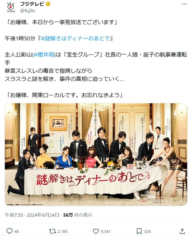 「また見たい櫻井翔ドラマ」ランキング、『木更津キャッツアイ』を抑えた"毒舌"がハマっていたドラマは【トップ3】 ピンズバNEWS編集部 2025.5.31 ジャニーズ (4/4ページ) 1ページ目から読む ■【画像】「また見たい櫻井翔ドラマ」トップ、お嬢様とのクールショット 櫻井は、『謎解きはディナーのあとで』で北川景子演じるお嬢様刑事が挑む事件を華麗な推理で解決する“毒舌”執事を演じた。 フジテレビ公式Xより この画像の記事を読む 1 2 3 4