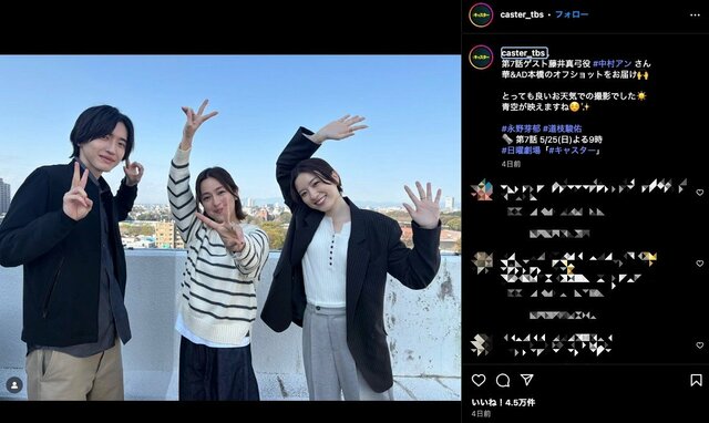 阿部寛『キャスター』は“永野芽郁押し”戦略か 露出減ナシで“ブーメランセリフ”連発…予想される終盤の出演増加 ドラマライター・ヤマカワ 2025.6.1 (3/3ページ) 1ページ目から読む ■【画像】永野芽郁、満面の笑顔で久しぶりのインスタ投稿『キャスター』オフショに賛否両論の声 公式インスタグラムに久々の登場となった永野芽郁。歓迎する声がある一方、ネガティブなコメントも多い。 ※画像は『キャスター』公式インスタグラムアカウントより ■TBS『キャスター』公式サイト この画像の記事を読む 1 2 3