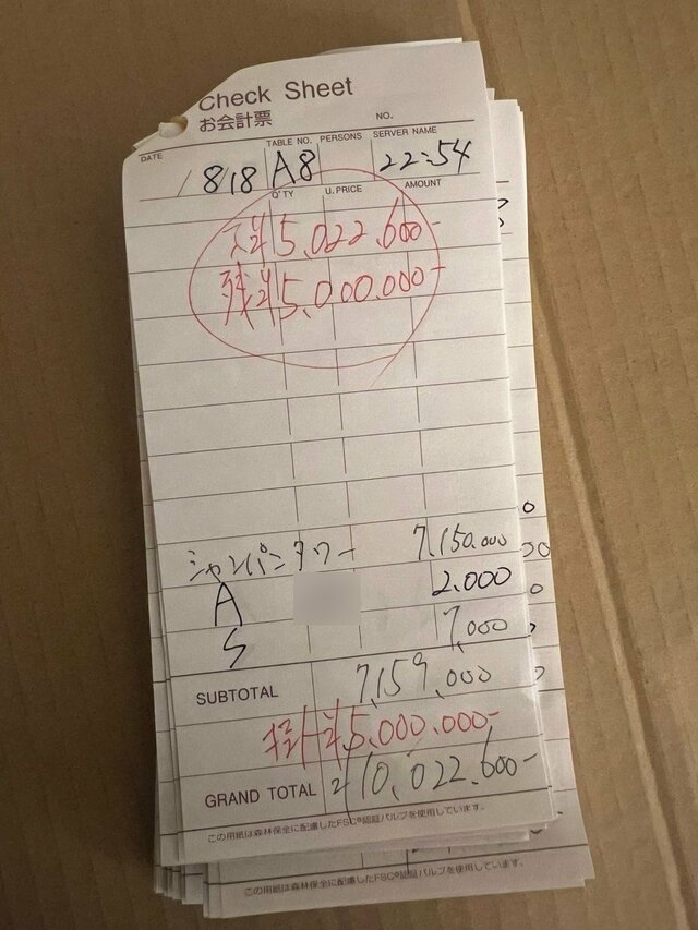 『令和の虎』出演者がオーナーのホスト店で蔓延る『立替制度』現役ホストは「売掛よりも悪質」と指摘 ピンズバNEWS編集部 2025.6.9 事件 (3/3ページ) 1ページ目から読む ■【画像】1000万円超『令和の虎』オーナー店のホストクラブの悪質伝票 桑田氏がオーナーを務める『NEW GENERATION GROUP』のすすきのにあるホストクラブでの伝票。会計額は1000万円を超えている。 ※画像はA子さん提供 この画像の記事を読む 1 2 3