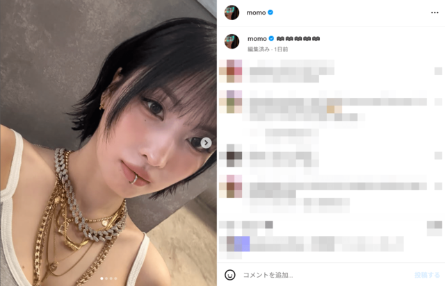 「イカゲームのセミ姉に似てる」TWICEモモ、ヘソ出しキャミ&ハードな口ピアス姿が沸騰「なんて美しいの」 ピンズバNEWS編集部 2025.7.15 エンタメ 韓流・K-POP (2/2ページ) 1ページ目から読む ■【画像】「イカゲームのセミ姉に似てる」TWICEモモ、ヘソ出しキャミ&ハードな口ピアス姿 ※画像はモモのインスタグラムより この投稿をInstagramで見る 모모 (MOMO)(@momo)がシェアした投稿 ※画像はモモのインスタグラムより 今回の投稿には《イカゲームのセミ姉に似てる》といった反応も。やや中性的なビジュアルが共通点か。 この画像の記事を読む 1 2