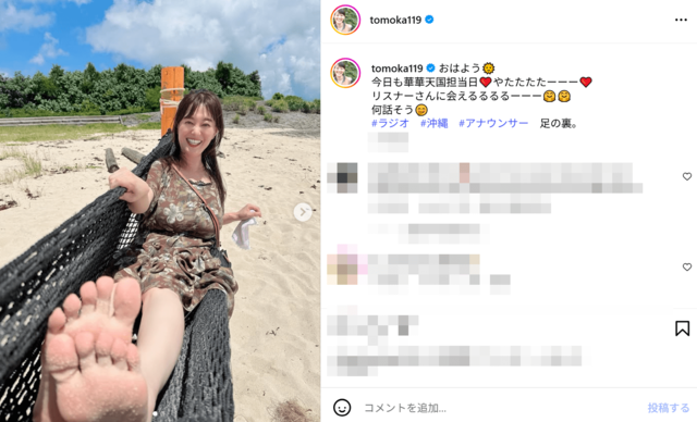 「足裏フェチには堪らん」“グラマラスすぎる”元NHKアナ、沖縄のビーチでくつろぐ開放的ショットが沸騰 ピンズバNEWS編集部 2025.8.8 エンタメ (2/2ページ) 1ページ目から読む ■【画像】「足裏フェチには堪らん」“グラマラスすぎる”元NHKアナ、沖縄のビーチでくつろぐ開放的ショット 《足裏フェチには堪らん》《大サービスショットに感謝です》という声にあるように、ファンを飽きさせない竹中のプロ意識はたいしたものだ。 ※画像は竹中知華のインスタグラムより、以下同 この投稿をInstagramで見る 竹中 知華(@tomoka119)がシェアした投稿 この画像の記事を読む 1 2