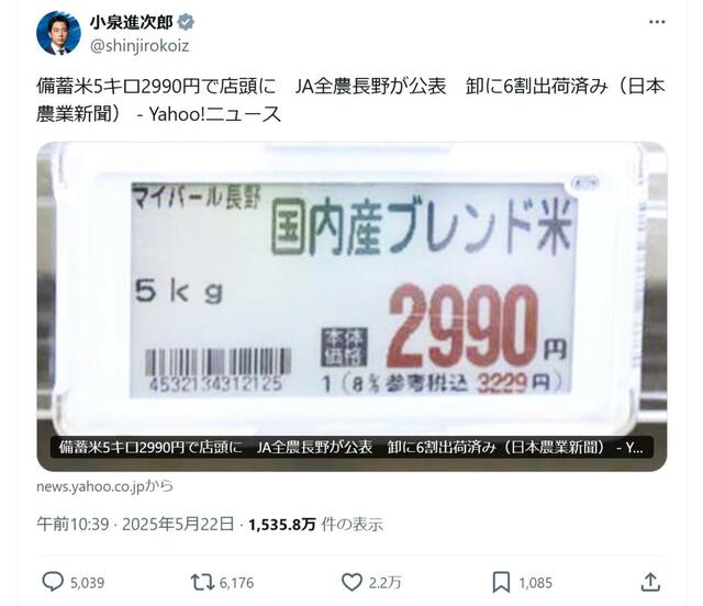 「値上げがキツい食料品」ランキング、肉や魚を超えた約2倍価格が高騰した必需品は【トップ3】 ピンズバNEWS編集部 2025.9.7 ライフ (4/4ページ) 1ページ目から読む ■【画像】"令和の米騒動"で備蓄米放出後も米の価格が「キツい」の声が続出 政府が対策として備蓄米を放出したが、品質や味についてSNSでは賛否の声もあがった。 小泉進次郎 公式Xより この画像の記事を読む 1 2 3 4