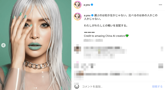 「ジョジョみたい」浜崎あゆみ、シルバーヘア&グリーンメイク姿が沸騰「今まで見たことないビジュアル」 ピンズバNEWS編集部 2025.9.12 アーティスト エンタメ (2/2ページ) 1ページ目から読む ■【画像】「ジョジョみたい」浜崎あゆみ、シルバーヘア&グリーンメイク姿が沸騰 浜崎のイメチェン画像は《ジョジョみたい》《今まで見たことないビジュアル!カッコよすぎる》といった反応もあり、大好評。近未来的な雰囲気になっているところも素敵。 ※画像は浜崎あゆみのインスタグラムより、以下同 この投稿をInstagramで見る ayumi hamasaki(@a.you)がシェアした投稿 この画像の記事を読む 1 2