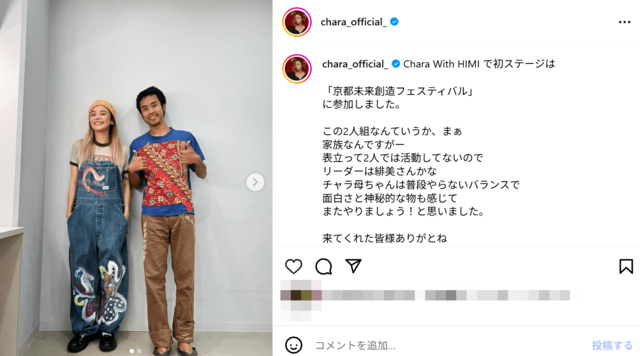 「口元そっくり」「カップルみたい」Chara、息子との笑顔弾ける2ショットが「親子に見えない」と話題に ピンズバNEWS編集部 2025.9.13 アーティスト エンタメ (2/2ページ) 1ページ目から読む ■【画像】「口元そっくり」「カップルみたい」Chara、息子との笑顔弾ける2ショット 《カップルみたい》《親子には見えません》という声があがったCharaの親子スナップ。おしゃれな世界感で魅了した二人が今度はどんなコラボを見せてくれるのかとても楽しみだ。 ※画像はCharaのインスタグラムより、以下同 この投稿をInstagramで見る Chara(@chara_official_)がシェアした投稿 この画像の記事を読む 1 2