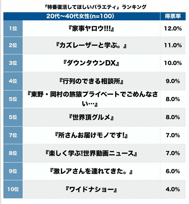 「いつも楽しく見ていたし、勉強になることも多かったので特番をやってほしい」(39歳/女性/会社員)