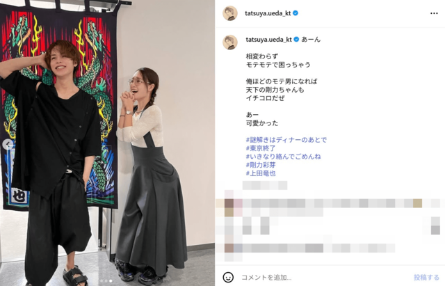 「鼻の下伸び過ぎたっちゃん」元KAT-TUN上田竜也、剛力彩芽と楽屋前でのわちゃわちゃ2ショに反響「本気のデレデレやないか」 ピンズバNEWS編集部 2025.9.26 女優 アーティスト エンタメ (2/2ページ) 1ページ目から読む ■【画像】「鼻の下伸び過ぎたっちゃん」上田竜也、剛力彩芽と楽屋前でのわちゃわちゃ2ショ 今回の上田の投稿には《鼻の下伸び過ぎたっちゃん》《本気のデレデレやないか》といった反応も。剛力の三つ編みヘアもなんだか新鮮だ。 ※画像は上田竜也のインスタグラムより、以下同 この投稿をInstagramで見る 上田竜也 Tatsuya Ueda(@tatsuya.ueda_kt)がシェアした投稿 この画像の記事を読む 1 2