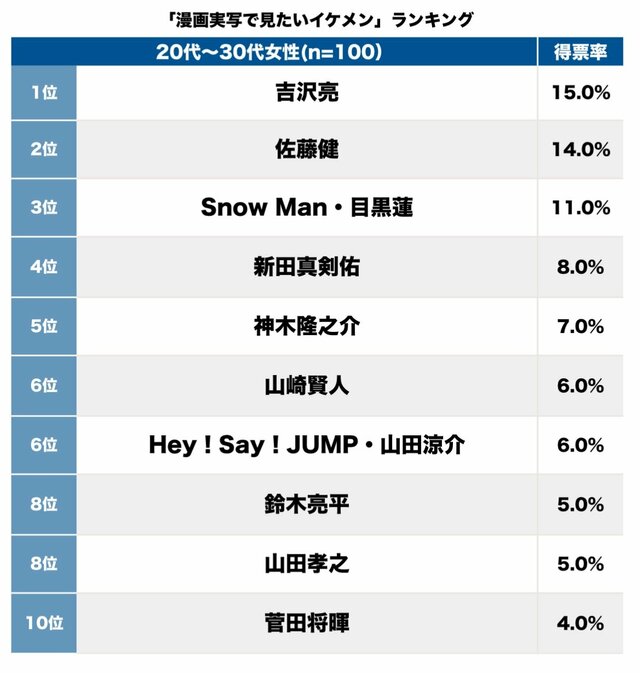 「イケメン俳優なので、いろいろな実写作品に出てほしい」(39歳/女性/会社員)