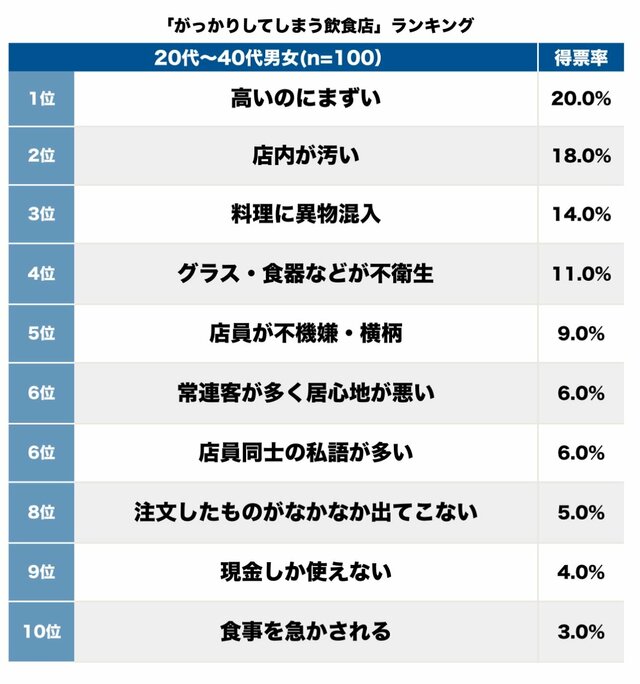 「まずいと何のために外食したのかわからない」(21歳/女性/学生)