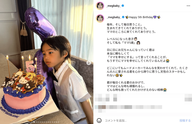 「どんどんイケメンに」三代目ELLYの元パートナーMEGBABY、5歳になった愛息との2Sに反響「いい顔してる」 ピンズバNEWS編集部 2025.10.2 アーティスト エンタメ (2/2ページ) 1ページ目から読む ■【画像】「どんどんイケメンに」三代目ELLYの元パートナーMEGBABY、5歳になった愛息との2S MEGBABYが公開した愛息の近影に、《どんどんイケメンになってく》《素敵な親子》というファンからの反応。美男美女から誕生した愛息の今後がとても楽しみだ。 ※画像はMEGBABYのインスタグラムより、以下同 この投稿をInstagramで見る megbaby(@_megbaby_)がシェアした投稿 この画像の記事を読む 1 2