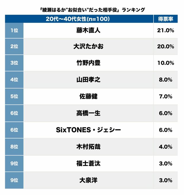 「藤木さんはスタイルも良くイケメンで、綾瀬さんをリードできそうだから」(41歳/女性/主婦)
