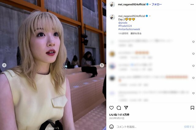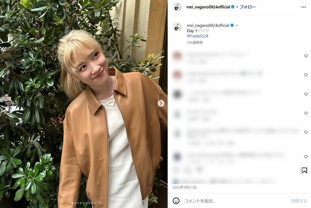 10月2日発売の『女性セブン』が伝えたのは、永野が9月上旬にフィリピンを訪問し、極秘で写真集の撮影を行っていたというもの。撮影中の永野は“眩しいほどの金髪姿”で、これまでのイメージとは異なる“大人な”雰囲気になっていたとのこと。画像は2023年9月、自身がアンバサダーを務めていた「プラダ」の2024年春夏ランウェイショーのため、ミラノを訪れていた金髪姿の永野芽郁。