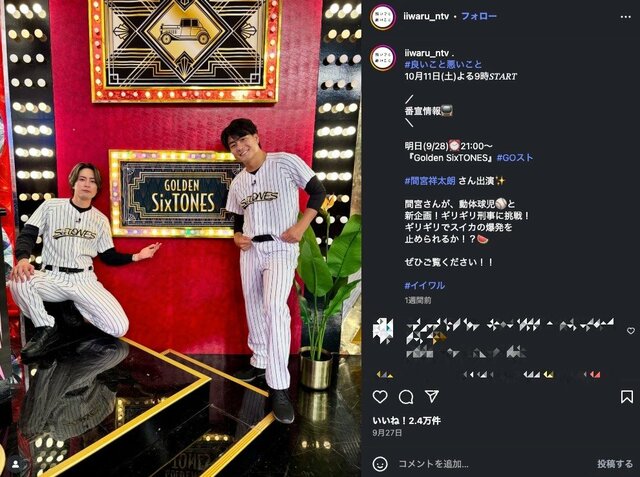 間宮祥太朗・新木優子『良いこと悪いこと』キャストは盤石も不安要素が続々と…考察ミステリー+平成懐かしネタは30代視聴者に届くか ドラマライター・ヤマカワ 2025.10.11 テレビドラマ (3/3ページ) 1ページ目から読む ■【画像】間宮祥太朗「7人目のSixTONES」森本慎太郎とのユニフォームショットにファン歓喜 わちゃわちゃと仲のいい間宮と森本だが、今作ではシリアスめな演技になりそう。 ※画像は『良いこと悪いこと』公式インスタグラムアカウントより ■日本テレビ『良いこと悪いこと』公式サイト この画像の記事を読む 1 2 3