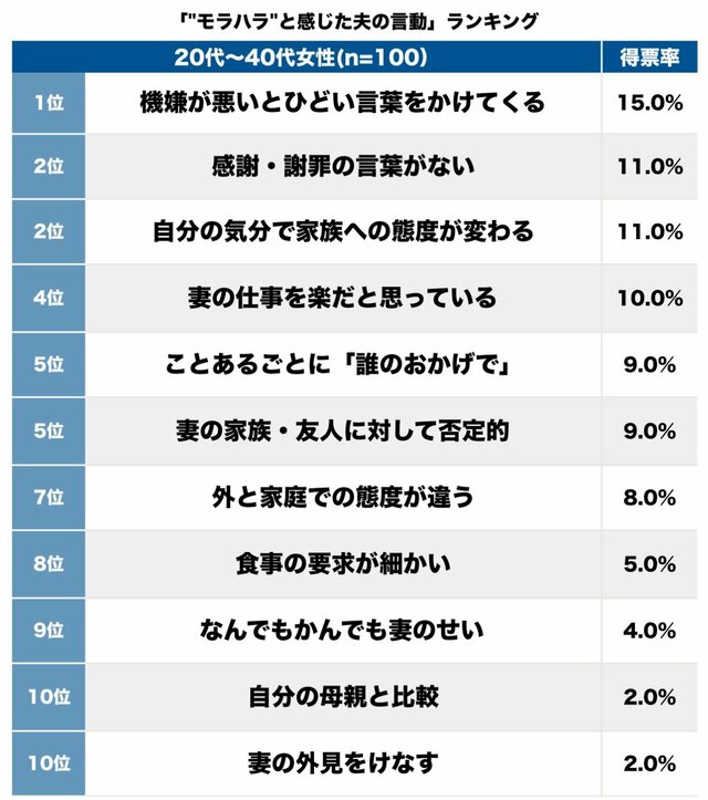 第1位は、「機嫌が悪いとひどい言葉をかけてくる」。
