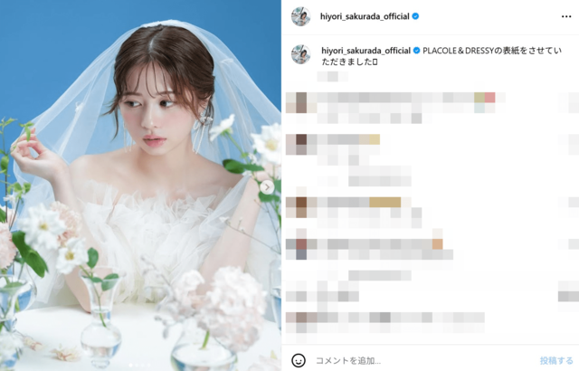 そんな桜田は、過去には《PLACOLE&DRESSYの表紙をさせていただきました》と綴り、ウエディングドレス姿を披露したことも。《全宇宙で一番美しい花嫁》《お姫様やん》とファンの熱烈な声が飛び交った。
