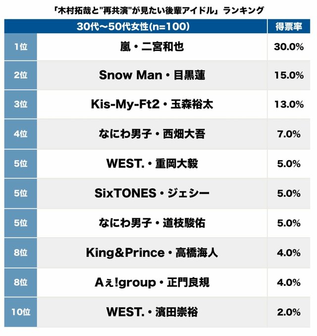 木村も二宮も主演級として活躍する2人、再び共演が見たいという声は多かった。