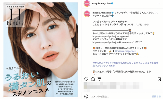■【画像】「海苔みたい」の声も…小嶋陽菜、思わず目が行く増量の“極太眉毛”で美容誌に登場