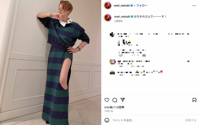 夏木は、ワイルドな雰囲気が漂うメンズライクなスタイリングや、大胆に刈り上げたヘアスタイルなどが印象的だ。10月1日にインスタグラムで、サイドが大胆にカットされ、太ももが露わになったロングスカートという、スタイルの良さが際立つ着こなしが反響を呼んだ。