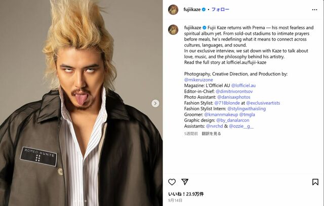 藤井は、9月8日放送の『徹子の部屋』(テレビ朝日系)に出演した際のファッションが話題になった。全身黒づくめの衣装で、犬をモチーフにした長い耳がついた帽子をかぶり、額にもレンズのついた三つ目サングラス姿で登場。これに司会の黒柳徹子は、「わあ、びっくりした」と驚いていた。