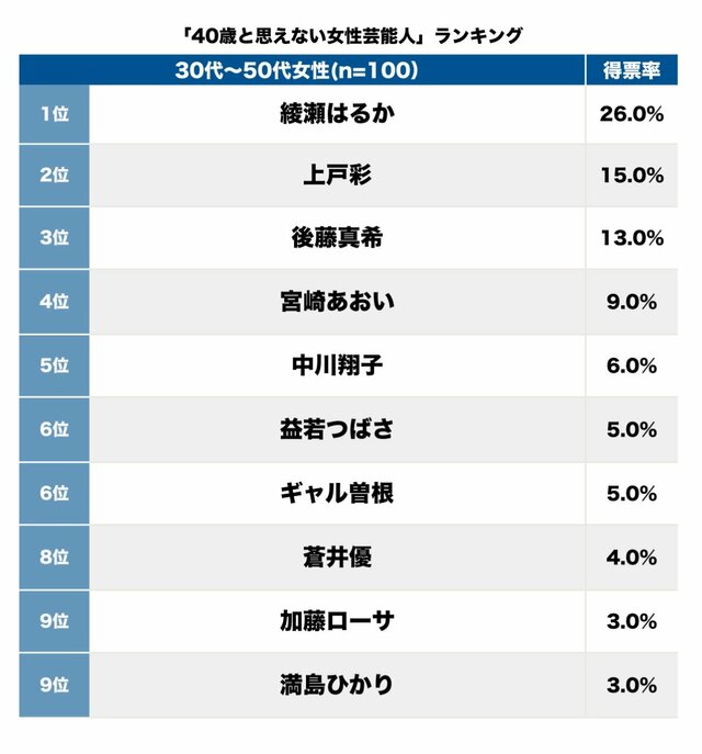 「若いときから変わった感じがしなくて、ずっと美しさを保っている」(51歳/女性)