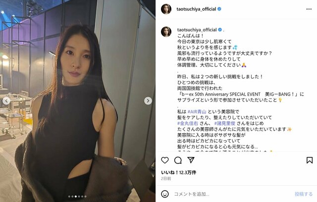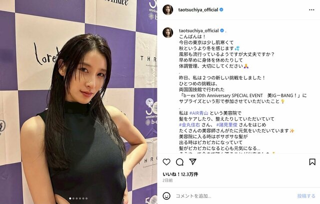 10月21日に両国国技館で開催された『b-ex 50th Anniversary SPECIAL EVENT 美IG-BANG!』に参加した土屋。ヘアショーにサプライズゲストとして登場してイメチェンを図った。