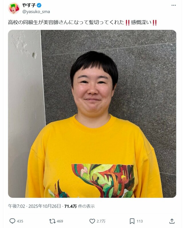 「お手柄芸能人」ランキング、山口智子宅の“暴漢撃退”唐沢寿明を抑えた”男児を救出”大物アイドル【トップ3】 ピンズバNEWS編集部 2025.10.28 女優 俳優 (4/4ページ) 1ページ目から読む ■【画像】人命救助で「命の恩人」と感謝されたやす子、パッツン前髪でイメージ激変の近影 過去に急性アルコール中毒になったバンドマンを救助し、本人からXで「僕の命の恩人」と感謝されたやす子。10月26日にはXで、美容師になった高校時代の同級生に髪をカットしてもらったことを報告していた。 やす子 公式Xより この画像の記事を読む 1 2 3 4