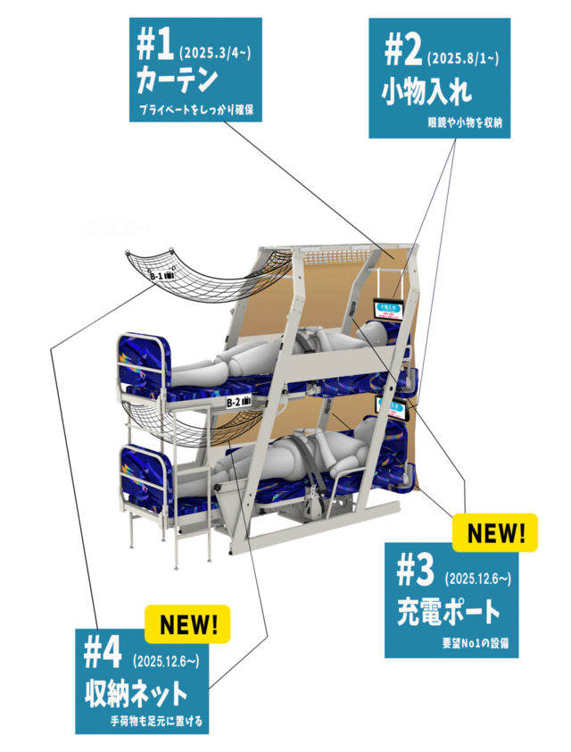 早朝ツアー、船泊、フルフラット夜行バスが人気に「過程を楽しむ」新たな旅のカタチ ピンズバNEWS編集部 2025.10.29 ライフ (4/4ページ) 1ページ目から読む ■【画像】「乗ると疲れる」はもう古い! “ほぼベッド”な最新深夜バスの衝撃座席はこちら 「高知駅前観光」が12月から運行する高速夜行バス「FLATON(フラットン)」には「ソメイユプロフォン」というフルフラットシートタイプの座席が搭載されている。 充電ポートに収納ネット……まるでカプセルホテルな座席だ(画像は「高知駅前観光」公式HPより) この画像の記事を読む 1 2 3 4