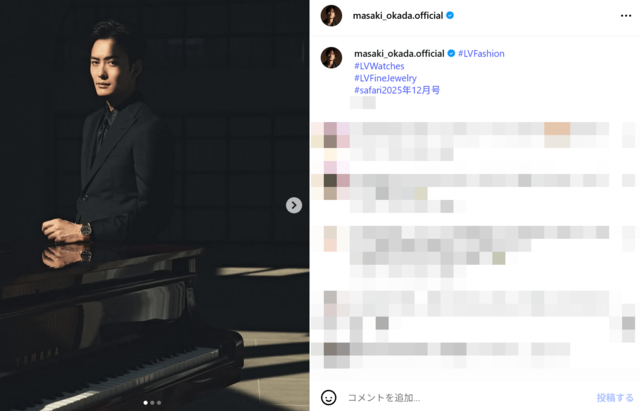 「そんな目でみつめないで」岡田将生、ピアノの隣に佇むデコ出し黒スーツ姿にうっとり「信じられないカッコよさ」 ピンズバNEWS編集部 2025.10.28 エンタメ 俳優 (2/2ページ) 1ページ目から読む ■【画像】「そんな目でみつめないで」岡田将生、ピアノの隣に佇むデコ出し黒スーツ姿 ピアノの隣に佇むデコ出し黒スーツ姿を披露した岡田将生に《そんな目でみつめないで》《信じられないカッコよさ》とファンも思わずうっとり。気品溢れるグランドピアノにも比類する“美貌”がスゴすぎる。 ※画像は岡田将生のインスタグラムより、以下同 この投稿をInstagramで見る 岡田将生/Masaki Okada(@masaki_okada.official)がシェアした投稿 この画像の記事を読む 1 2