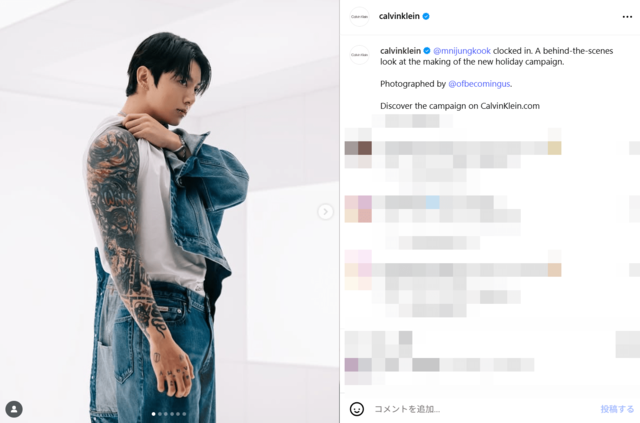 「刺激強すぎる」BTSジョングク、“カラフルタトゥーびっしり”の『カルバン・クライン』オフショが沸騰 ピンズバNEWS編集部 2025.11.3 エンタメ 韓流・K-POP (2/2ページ) 1ページ目から読む ■【画像】「やめて」「刺激強すぎる」BTSジョングク、びっしりカラフルタトゥーショット クールなタトゥーとカルバン・クラインのアイテムがよく似合うジョングクに《やめて》《刺激強すぎる》と悲鳴が。鍛え抜かれた肉体にタトゥーが映えている。 ※画像は『カルバン・クライン』のインスタグラムより、以下同 この投稿をInstagramで見る Calvin Klein(@calvinklein)がシェアした投稿 この画像の記事を読む 1 2