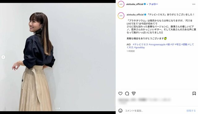 ■【画像】「43歳は流石に嘘でしょ」大塚愛、ミセス番組での若々しすぎる近影 “振り返り美人姿”も