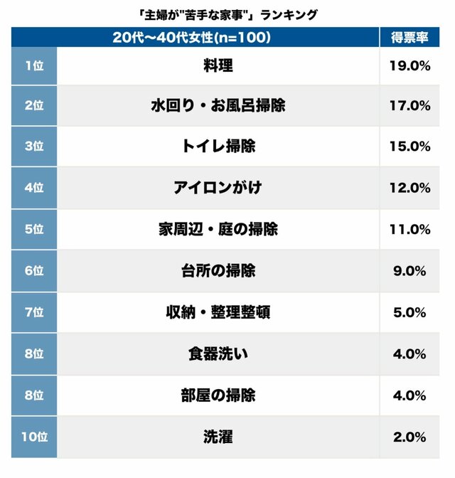 そして第1位(19.0%)は、料理。