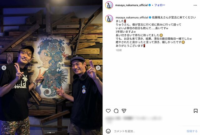 「精神のリハビリ中」“現状吐露”嵐・大野智は慕われる男――13年前連ドラ共演“同年齢俳優”との絆 ピンズバNEWS編集部 2025.11.8 テレビ&ラジオ テレビドラマ ジャニーズ 俳優 (3/3ページ) 1ページ目から読む ■【画像】大野智と13年前連ドラ共演俳優、宮古島BAR“大野タッチ”イラストを前に全開笑顔 嵐・大野智と俳優・佐藤隆太は2012年1月放送の新春スペシャルドラマ『もう誘拐なんてしない』で共演。その佐藤が、大野が実質的なオーナーだと報じられている沖縄・宮古島のバーを訪れ、“大野タッチ”のイラストを前に全開の笑顔を見せた。 ※画像は中村昌也の公式インスタグラムより この画像の記事を読む 1 2 3