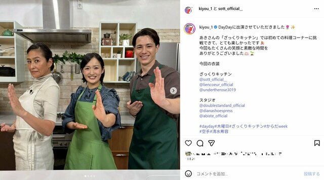 「誰かと思った」“空手界の綾瀬はるか”元アスリート美女のテレビ出演衣装が沸騰、“第2の石川佳純”の呼び声も ピンズバNEWS編集部 2025.11.10 テレビ&ラジオ エンタメ その他スポーツ (2/2ページ) 1ページ目から読む ■【画像】「誰かと思った」清水希容が披露した超絶キュートなエプロン姿 東京五輪の空手・女子形で銀メダルを獲得し、2024年5月に引退した清水希容(31)が11月6日、情報バラエティ番組『DayDay.』(日本テレビ系)に出演。最新の姿に視聴者からは《誰かと思ったら、清水希容さんだ》《空手してる時とは別人のようだ…。可愛い方ですね》といったコメントが寄せられた。 ※画像は清水希容のインスタグラムより この画像の記事を読む 1 2