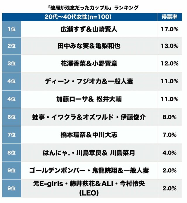 「お似合いだと思っていたから残念」(37歳/女性/会社員)
