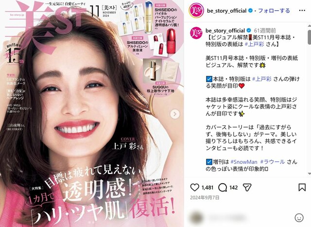 「28歳・目黒蓮」の主演映画『SAKAMOTO DAYS』の妻役に「40歳・上戸彩」に疑問の声噴出も…4つの納得理由 ピンズバNEWS編集部 2025.11.12 テレビドラマ 女優 ジャニーズ (3/3ページ) 1ページ目から読む ■【画像】目黒蓮の妻役・上戸彩、「眉毛ふっと」タレ極太眉の印象激変姿 24年9月、タレ太眉の印象激変メイクで美容雑誌『美ST』(光文社)の表紙に登場した上戸彩。そのビジュアルに《「眉毛ふっと》など、トレンドメイクに驚きの声が上がる一方、上戸の進化した美貌に《綺麗過ぎる》と賞賛が寄せられた。 ※画像は『美ST』の公式インスタグラムより この画像の記事を読む 1 2 3