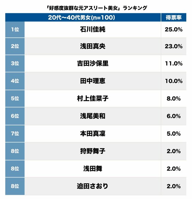 そして第1位(25.0%)は、石川佳純。