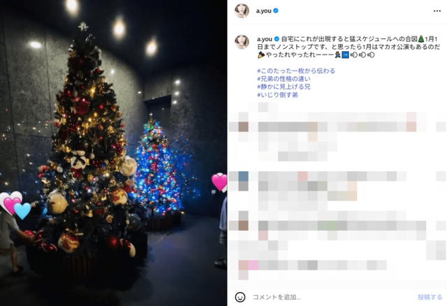 自宅の巨大ツリーと薄着の子どもたちに《ホテル並み》《しかしデカい》《息子さん、背が伸びましたね》《半袖半ズボンで可愛すぎ》と驚き交じりの声が寄せられた浜崎あゆみ。どんな角度からも話題提供してくれるところは、まさしく“平成のスター”らしい。