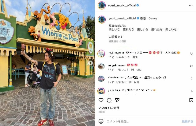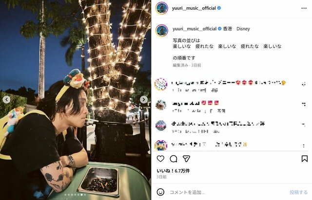 優里、ディズニーランドで“ゴリゴリタトゥー&くわえタバコ姿”が沸騰のウラで…違和感殺到した“えぐい”リュック ピンズバNEWS編集部 2025.11.18 アーティスト エンタメ その他イケメン (2/2ページ) 1ページ目から読む ■【画像】「可愛いのにイカつい」優里が夢の国で披露した“ゴリゴリタトゥー&くわえタバコ姿”、違和感殺到したリュックコーデ シンガーソングライターの優里(31)が11月17日までにインスタグラムを更新し、香港のディズニーランドを満喫するショットを公開。彼のびっしりタトゥーやタバコをくわえた姿が話題となるなか、キュートなリュックにも注目が集まった。 ※画像は優里のインスタグラムより(以下同) この画像の記事を読む 1 2
