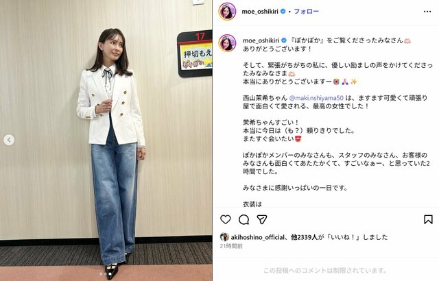 モデルでタレントの押切もえ(45)が11月17日、昼のバラエティー番組『ぽかぽか』(フジテレビ系)に生出演。彼女の最新ビジュアルに対し、SNS上では「まるで別人」「誰かわからなかった」などの声が上がった。