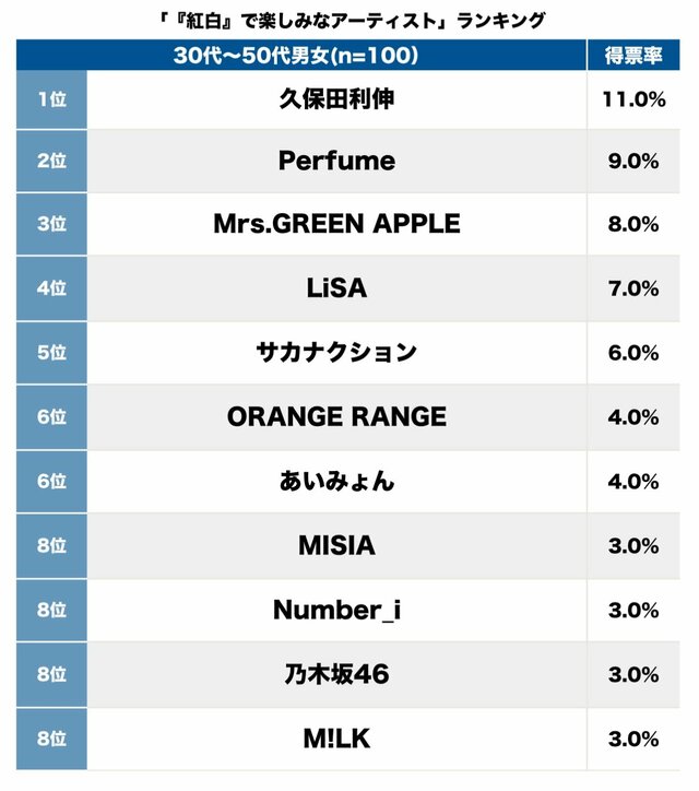 「紅白で見たい久しぶりのアーティストなので楽しみにしている」(49歳/男性/会社員)