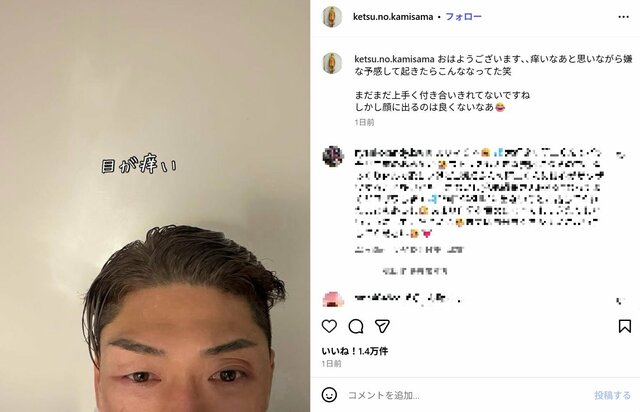 原因不明の疾患から12日…ゴールデンボンバー・樽美酒研二が驚きの診断結果を報告「体が悲鳴をあげたのでは」 ピンズバNEWS編集部 2025.11.27 アーティスト エンタメ その他イケメン (2/2ページ) 1ページ目から読む ■【画像】「嫌な予感して起きたらこんななってた笑」樽美酒研二が公開した腫れたまぶたの写真 ビジュアル系エアーバンド「ゴールデンボンバー」の樽美酒研二(44)が11月26日、インスタグラムを更新し、体や顔面に出ていた蕁麻疹について、検査結果を報告。《先生といろいろ話した結果、トレーニングのやり過ぎ、睡眠不足から来てるんではないか》と説明を受けたという。 ※画像は樽美酒研二のインスタグラムより この画像の記事を読む 1 2